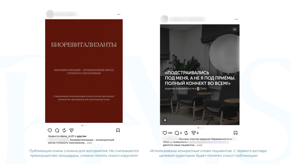 Таким образом, у вас не будет репостов, сохранений, реакций – и лояльность пациентов не повысится.